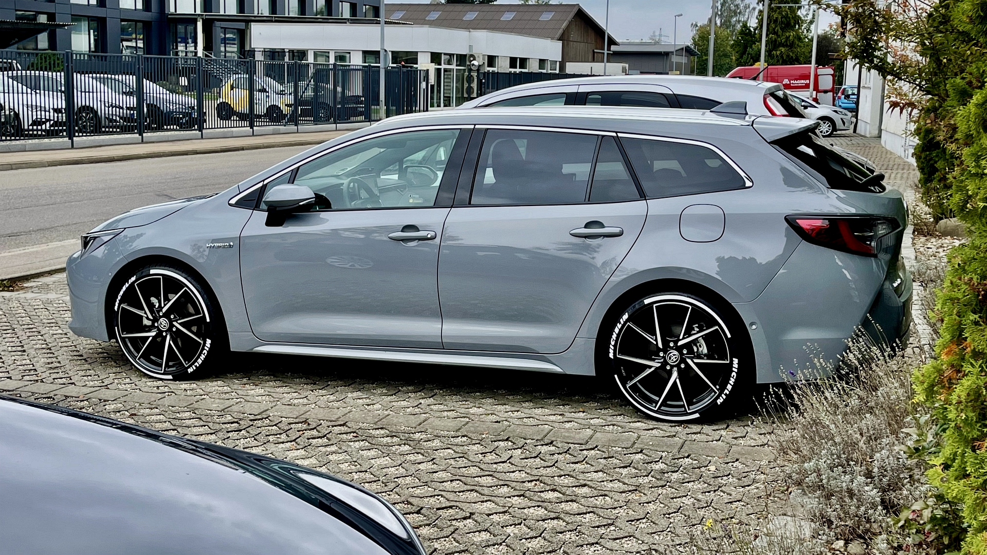 Nächstes Frühjahr soll er dann noch 30mm runter und der Frontsplitter und die Seitenschürzen drunter (bringt noch mal so 14mm dann sollte das ein rundes Bild ergeben mit Abstand von Reifenkante zu Radhausschale und dem "Sportkombi Effekt" aber ohne dramatische Tieferlegung oder Komfortnachteile. Tiefgarage ginge dann immer noch, mein Octavia damals war MASSIV Tiefer und der ging "grad so drüber", unser Corolla baut ja auch extrem hoch für einen modernen "Sportkombi" also sollte das alles im Rahmen bleiben.